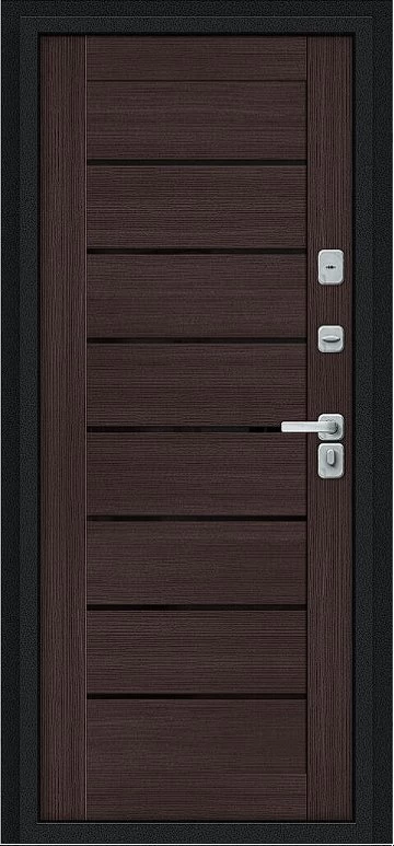 Дверь Браво Thermo Техно Д2/BChrome Букле черное/Wenge Melinga - недорогая эконом класса по цене 5 915 руб., отлично подходит для временной установки в квартиру под сдачу, строительство, ремонт. Не смотря стоимость, модель хорошего качества.
